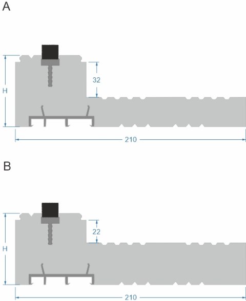 | F - dolny profil PVC do zaczepienia kotwy montażowej | |