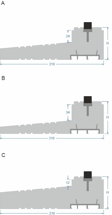 F - dolny profil PVC do zaczepienia kotwy montażowej